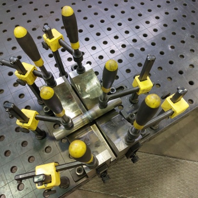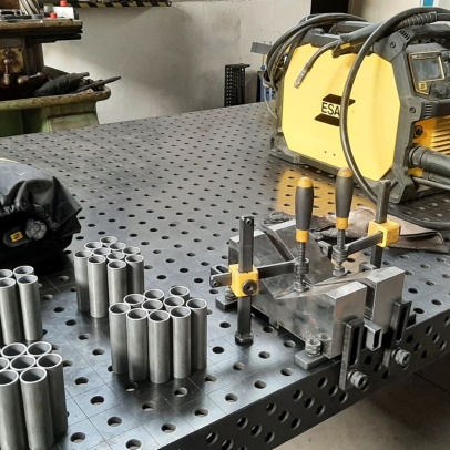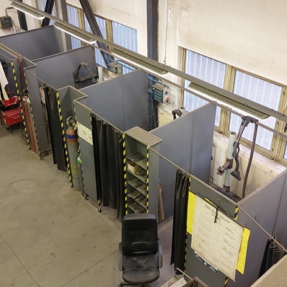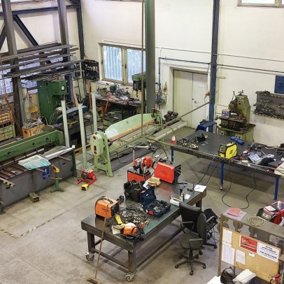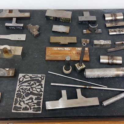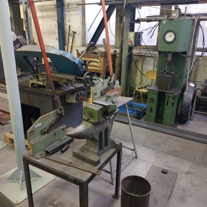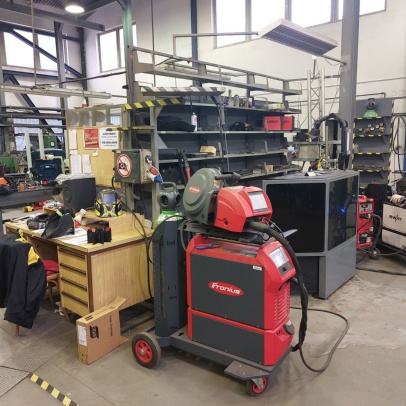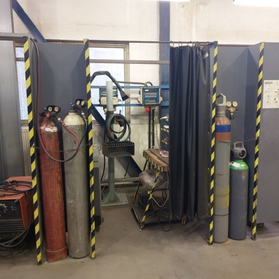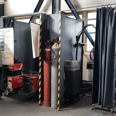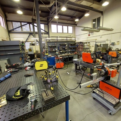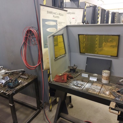 Welding and Forming Laboratory (L20): Heavy laboratory provides facilities for welding and cutting of materials, including the necessary preparation of semi-finished products. It houses a hydraulic press, a portable IMP hand-held cutting machine, a universal lathe, a MN 80A spindle lathe, a BAD-40A bench grinder, a double disc grinder, a straight grinder, an angle grinder, a DEWALT grinder, a portable tungsten electrode grinder, a PEGAS band saw, a pillar drill with a vice, machine shears, and hand lever shears, Hypertherm Power and CEBORA plasma cutting equipment, thermocouple probes, thermometers, 3EG42 universal sharpening machine, OMB-DAQ-56 modular data acquisition system, TR4000C remote control for welding machines, machine torch, SP2 drying oven, SATAjet nozzle set and nozzle, POWER 66 positioner, round 100TIG positioner, compressor Aircraft 823/100, WIG flame remote control, welding hoods. For material preheating and heat treatment, electro-resistance heating and LAC annealing furnace are used. Welding equipment from Broco, RHEM, Fronius, ESAB, and LORCH is used.