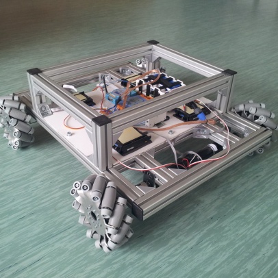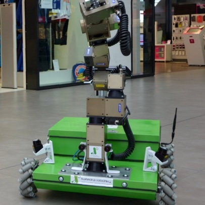 Tento mobilní robot byl navržen a realizován v diplomové práci studenta katedry jako testovací podvozek pro všesměrová kola.