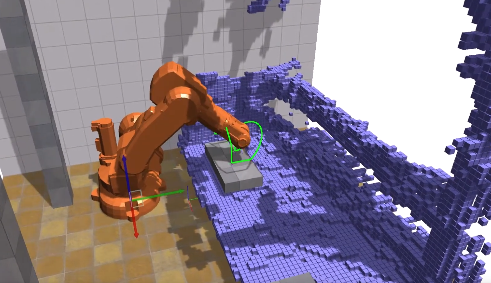 Výsledkem je vytvořený experimentální stend monitorující překážky (i dynamicky se měnící) ve sdíleném pracovním prostoru kolaborativního robotu pomocí 3D kamer. Pracoviště s kolaborativním robotem (UR3) je z pohledu HW složeno z pracovního stolu, ke kterému je připevněn robot. Hloubková kamera je libovolně umístěna v prostoru tak, aby snímala pracovní prostor robotu. SW pracoviště zajistí synchronizaci digitální kopie statické scény (robotu, stolu, periferií) a detekuje překážky, které se objeví v pracovním prostoru.